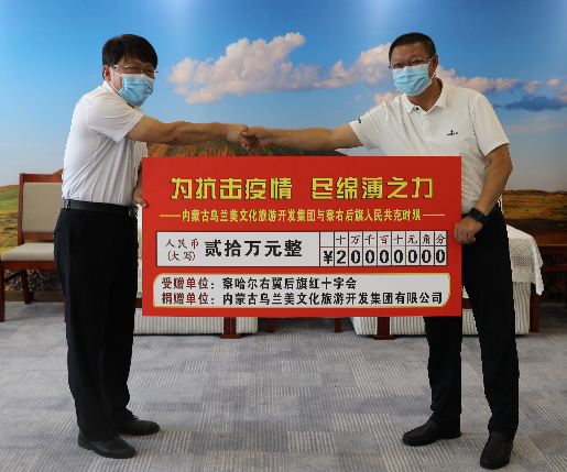 察右后旗閆富副書記表示,疫情無情人有情,烏蘭美文旅集團(tuán)克服疫情導(dǎo)致的文旅康養(yǎng)產(chǎn)業(yè)受困,經(jīng)營(yíng)效益下滑,自身需要紓困情況下,籌措資金捐助我旗疫情防控工作,體現(xiàn)了烏蘭美人的大愛精神,體現(xiàn)了烏蘭美文旅集團(tuán)作為國(guó)有企業(yè)應(yīng)有的社會(huì)擔(dān)當(dāng),希望集團(tuán)和我旗逐步深化地企合作,共同促進(jìn)我市文旅康養(yǎng)產(chǎn)業(yè)發(fā)展。