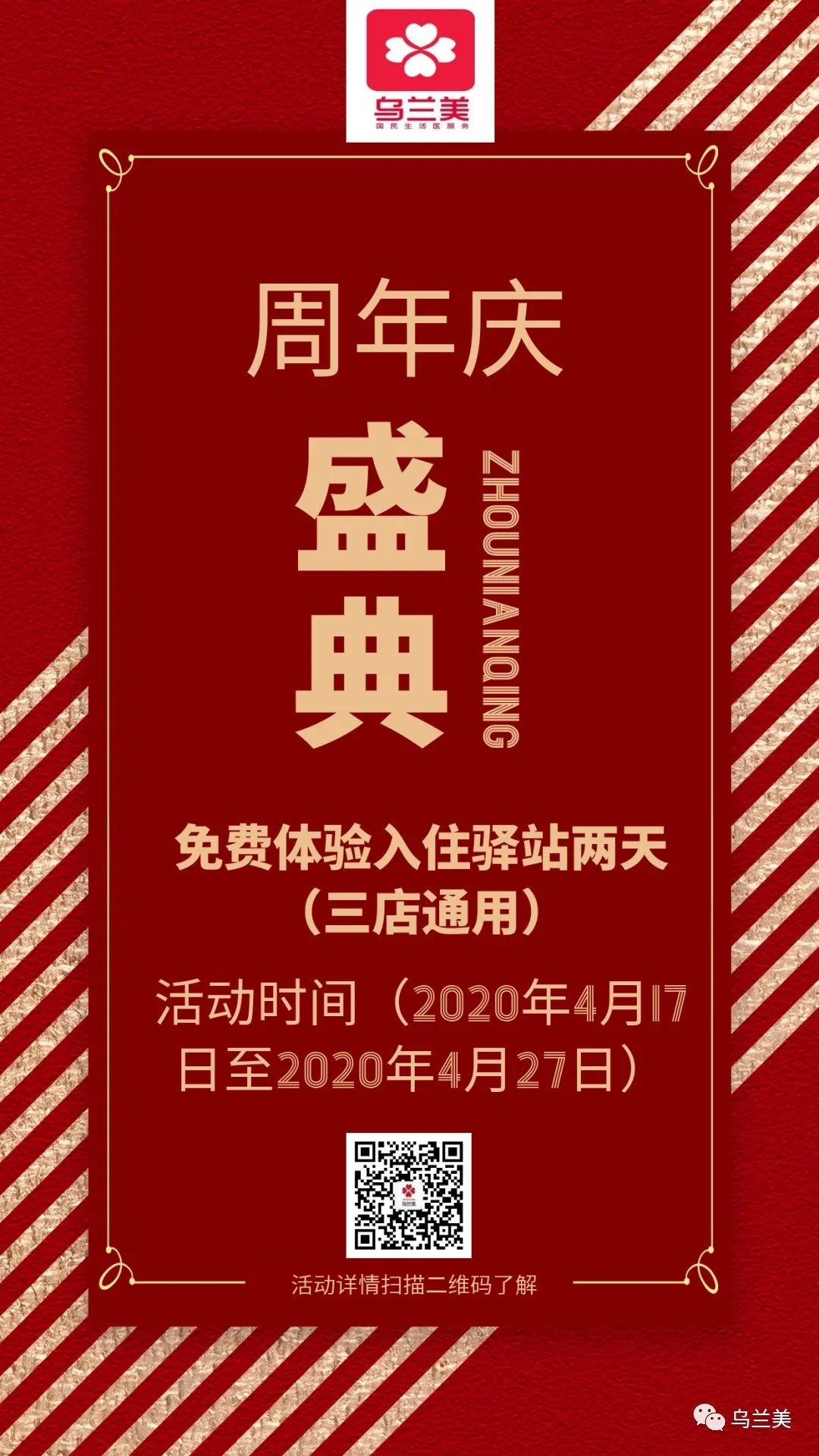 【周年鉅惠】烏蘭美養(yǎng)老驛站(中心醫(yī)院店)一歲啦!特大福利震撼來襲~發(fā)布時間: 2020-04-16